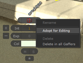 3. Right-Click the light parameter widget and select Adopt for Editing.