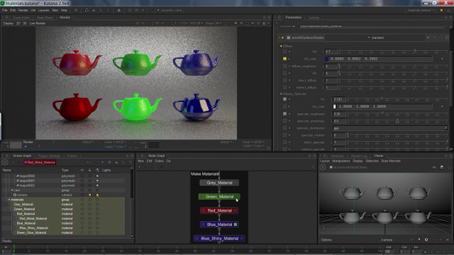 More uses of Look Files in Katana including baking, material overrides, collections, and palettes of materials.