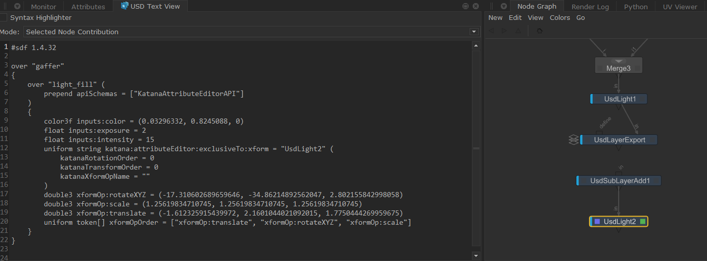 You can create native USD lights in Katana using the UsdLight node. This node also allows you to edit existing USD lights that have been imported.