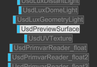 UsdPreviewSurface shading node types are accessible from the USD shading node creation menu inside NetworkMaterialCreate nodes.