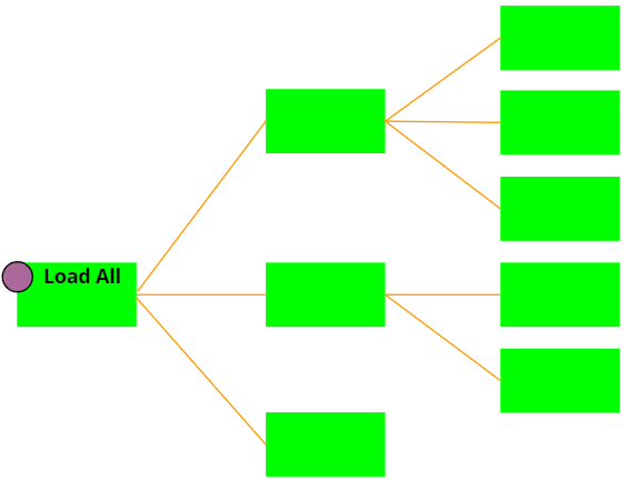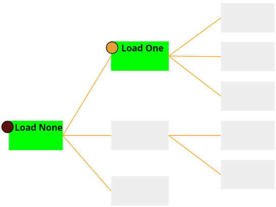 A combination of payload rules on a simple graph. The leftmost node has a Load None rule but if present the payload would be loaded as there is a downstream Load One rule.