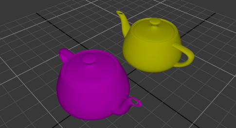 Inspecting both teapot mesh items will show their viewer.default.drawOptions attributes at the default values.