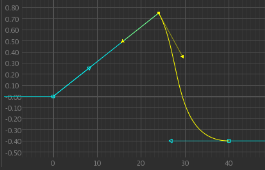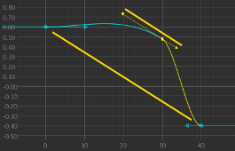 The Plateau tangent type uses the Flat and Smooth tangent types depending on its keyframes location relative to the keyframes on either side. If the keyframes on either side are both above or both below the tangent’s keyframe, then the Flat tangent type is used. If the tangent’s keyframe falls between the values for the keyframes on either side, then the Smooth tangent type is used. When using the Smooth tangent type, if one of the control points for the tangent would fall outside the range between the keyframes on either side, then that control point converts to the Flat tangent type instead.