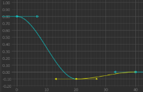The Smooth Normal tangent type places the two control points vertically in line with the keyframe. Whichever keyframe is higher between the keyframes to the left and right, controls the direction of the curve. Should the keyframes to the left and right be equal, both control points are placed vertically below.