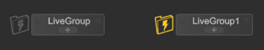 The LiveGroup icon changes from gray to yellow to indicate the editable state.