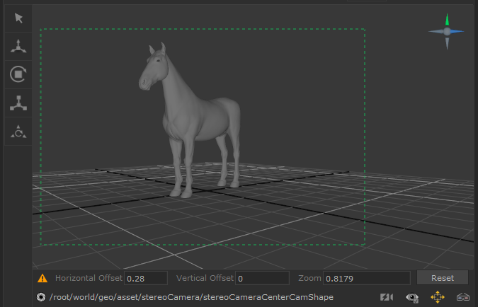 The Horizontal/Vertical Offset (pan) and Zoom controls allow you to adjust the Viewport position without actually moving the camera. This is useful when a camera has been loaded from another package (such as when representing a camera track) and you don’t want to change its position or orientation.