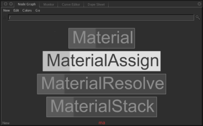 • typing the capital letters that make up the node name (for instance, typing MA for the MaterialAssign node).
