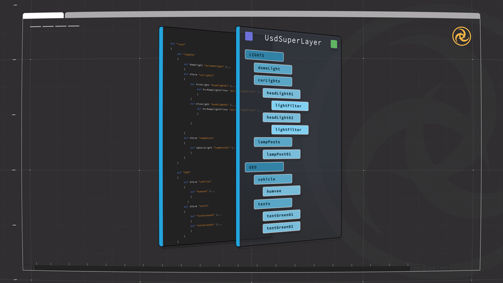 • It’s not limited to lights - the UsdSuperLayer allows the manipulation of any prim, and can be extended to create them.