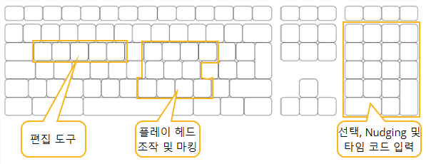 모달 편집 도구는 Q, W , E , R , T 타임 라인이 활성 탭인 경우 키보드 단축키.
