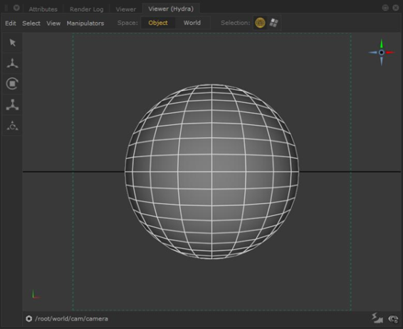Katana 노드 그래프의 PrimitiveCreate 노드에있는 정보에서 장면 그래프에 구 프리미티브를 만듭니다. 에서 기본 위치를 선택하십시오 Scene Graph 탭을보고 Attributes 탭.
