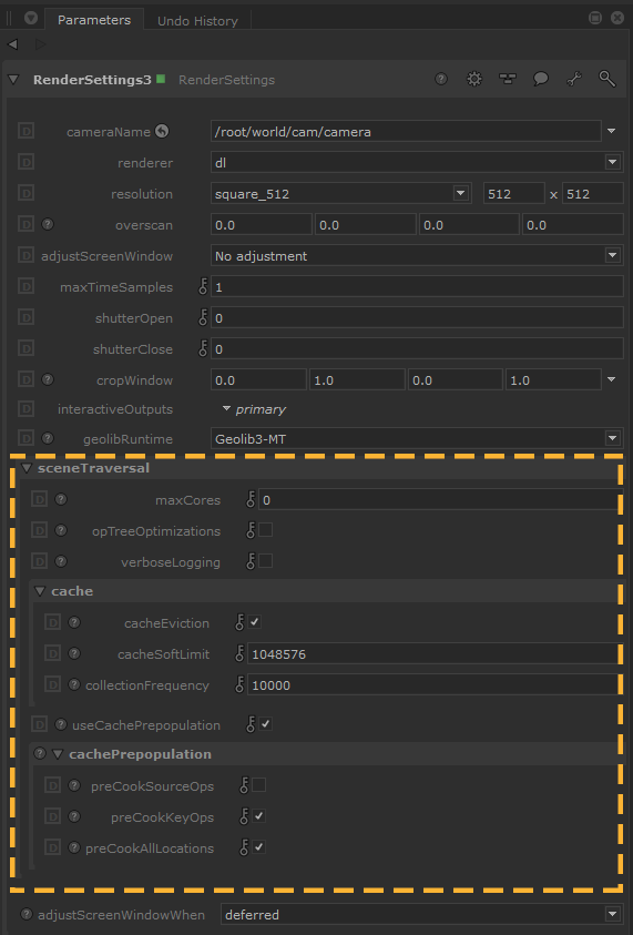 Geolib3-MT는 RenderSettings 마디. 모든 Geolib3-MT 옵션은 sceneTraversal 표제.