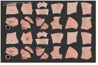 | 5. | 모델의 UV 패치를 평면으로 보려면 UV 탭. |