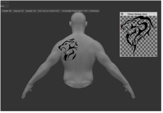 | 6. | 소스를 선택하면 페인트 할 수 있습니다. 커서는 이미지에서 모델로 스탬프를 복제 할 때 모델의 커서와 동기화되어 이미지에서 이동합니다. |