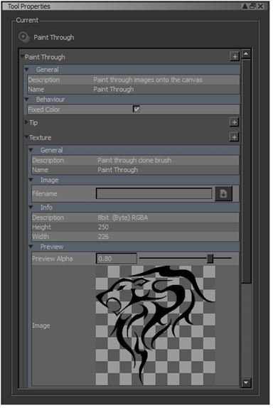 팁: 그만큼 Tool Properties 팔레트에는 페인트 스루 이미지 조작을위한 많은 옵션이 있습니다.