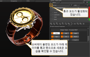 이렇게하면 멀티 채널 레이어에 마스크가 추가되어 팔찌 부분에만 재질이 적용됩니다.