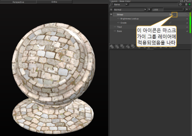 마스크 스택 icon은 레이어 목록에서 마스크 아이콘을 대신합니다. 아이콘을 클릭하여 마스크 스택 팔레트를 엽니 다.