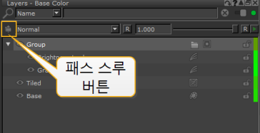 패스 스루 버튼이 상단에 나타납니다 Layers 팔레트.
