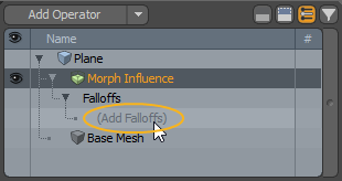 | 7. | 에서 Add Operator window, 로 이동 New > Falloffs 을 추가 한 다음 추가하려는 폴 오프를 두 번 클릭하십시오. 필요한 폴 오프를 추가하려면이 과정을 반복하십시오. |