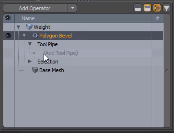 | 5. | 메시 운영 탭에서 Polygon Bevel > Tool Pipe을 클릭하고 (Add Tool Pipe). |