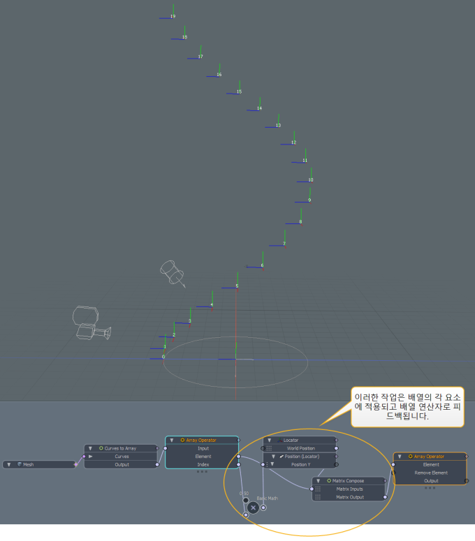 카운트는 Channels 오른쪽에있는 뷰포트 Locators to Array 회로도에서리그 수는 리그의 다른 측면에 대한 요소 수를 알아야 할 때 유용 할 수 있습니다. 예를 들어 방사형 배열헬릭스 생성기 노드를 연결할 수 있습니다. Count 에 가치 Count 채널.
