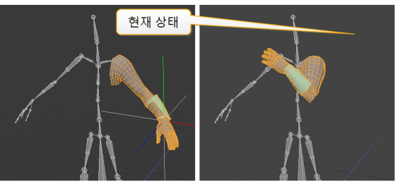 선택한 관절에 회전 값이 적용됩니다.