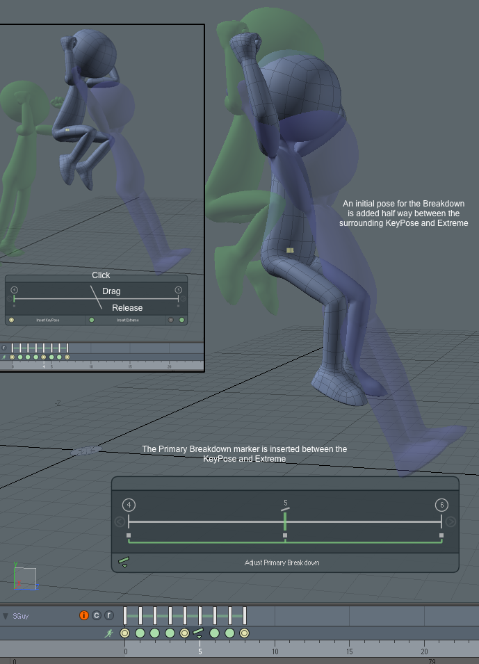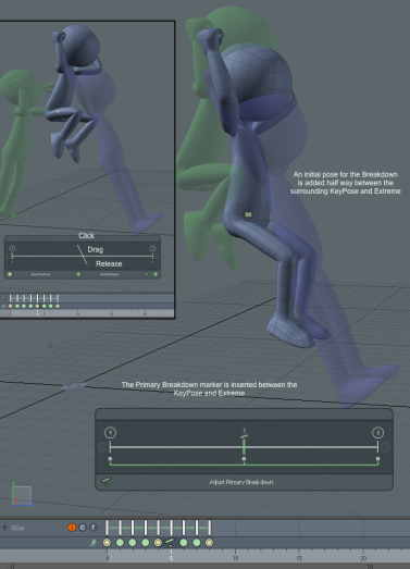 노트 :  KeyPoses와 Extremes의 간격을 이미두고 그 사이에 빈 프레임이 있으면 버튼이 Add Primary Breakdown 단추. 이 버튼을 클릭하면 다음 포즈를 앞으로 이동시키지 않고 현재 시간에 포즈를 만듭니다. 마찬가지로 간격 차트에 분류를 그리면 Modo 다음 포즈를 이동하지 않지만 프레임을 중간 (또는 가능한 절반 정도)으로 중간에 설정하고 그 자세를 추가합니다.