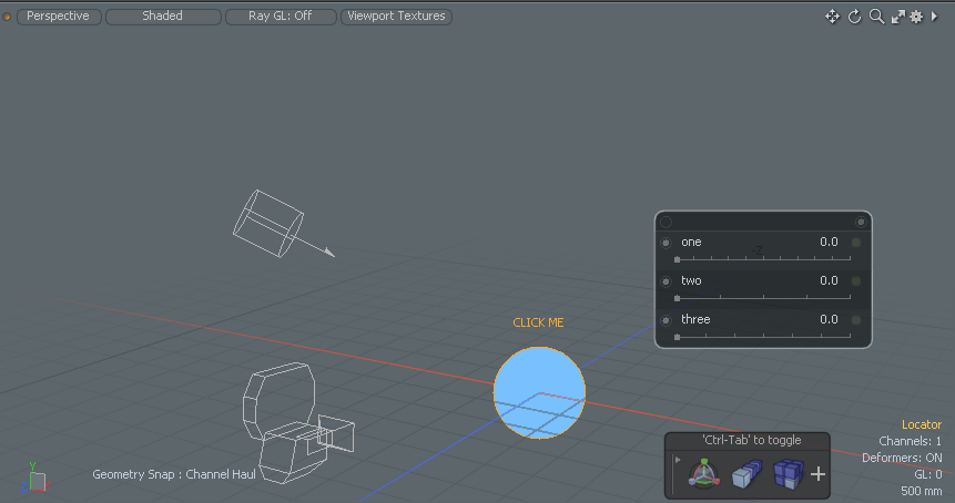 채널 운반 도구를 활성화하려면 Channels 또는 Properties 뷰포트를 클릭하고 Channel Haul Tool 버튼을 누르거나 C 키. Modo 3D 뷰포트 내에 채널 운반 도구의 인터페이스를 표시합니다. 채널 이름을 클릭하고 가로로 드래그하면 뷰포트 내에서 대화식으로 값을 조정할 수 있습니다. 또는 값 자체를 클릭하면 새 값을 입력 할 수 있습니다. 채널 운반 도구를 사용하면 최대 6 개의 선택한 채널을 동시에 수정할 수 있습니다. 값을 편집하면 오른쪽에 노란색 점이 나타납니다. 노란색 점을 클릭하면 채널에 대한 모든 변경 사항이 취소됩니다.