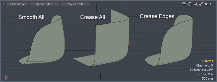 • Crease All -두 개의 인서트 에지 (valence = 2)를 가진 포인트는 주름 규칙에 의해 이동됩니다. 경계의 다른 위치는 두 개의 경계 모서리로 부드럽게됩니다.