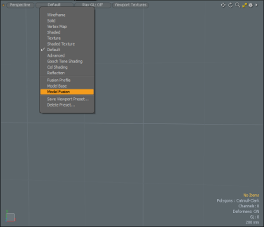 | 1. | 를 엽니 다 Model 레이아웃에서 Default 3D 뷰포트 상단에있는 버튼을 클릭하고 Model Fusion. |