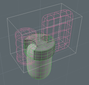 Subtractive Trim을 Primary에 적용하면 두 메시의 겹치는 영역이 제거됩니다. 트림은 뷰포트에서 자홍색으로 강조 표시되고 Item List.