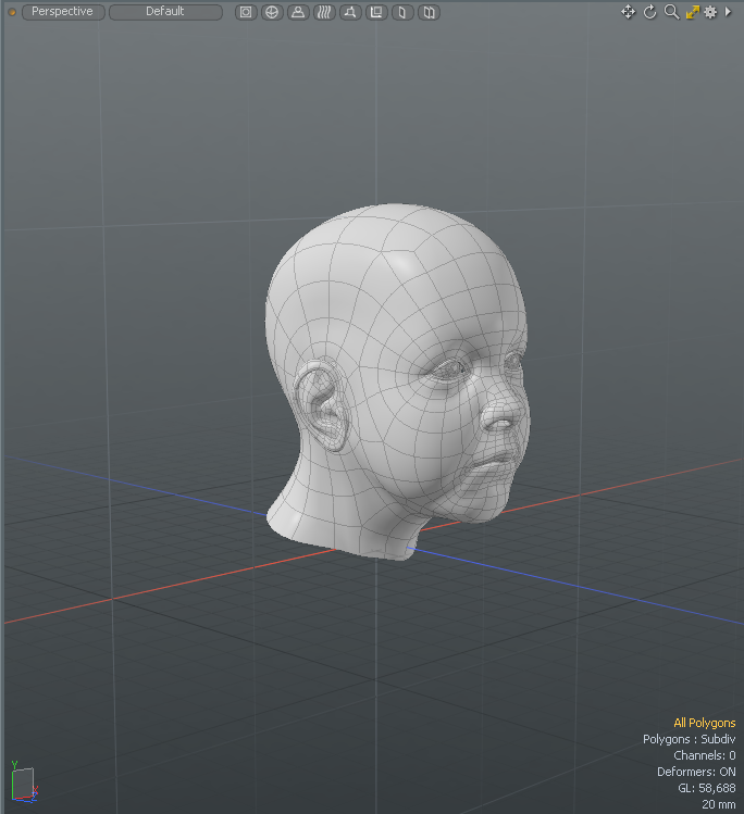 이 예에서 우리는 Cloud Assets > Meshes > Human > Child Head 01 사전 설정. 이 클라우드 자산을 이전에 다운로드 한 경우이 클라우드 자산을 Assets > Meshes > Human 예배 규칙서.