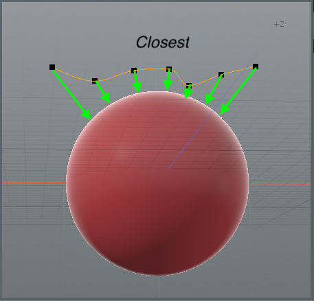 Closest -해당 표면까지의 최단 거리를 기준으로 객체의 점을 다른 표면으로 제한합니다.