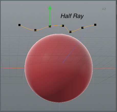 Half Ray -항목을 움직일 수 있으며 해당 표면과 연결될 때 형상이 다른 객체의 표면에 구속되도록 할 수 있습니다.