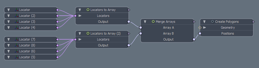 다각형 만들기를 사용하려면 장면에 하나 이상의 위치 배열이 있어야합니다. 여기 예제는 로케이터 위치에서 생성 된 배열을 사용하여 배열 수정 자 수정 자.