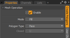 | 4. | 를 선택하십시오 Create Polygons 오른쪽 패널에서 해당 속성을 엽니 다. 기본적으로 작업은 Fill Mode 그리고 생성 Face 다각형. 필요한 결과를 얻으려면 옵션을 조정하십시오. |