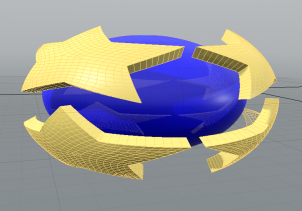 기본적으로 소스 지오메트리는 대상 메시의 표면에 평평하게됩니다. 그러나 선택을 해제하면 Wrap to Surface소스 메시가 대상 메시에 적용될 때 깊이를 유지할 수 있습니다. 아래 그림과 같이 다른 메시 표면 주위에 3D 객체를 감쌀 수 있습니다.