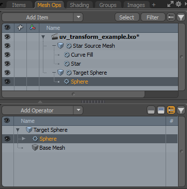 10.   추가 UV Transform 도구 : Mesh Ops 탭을 클릭하십시오 Add Operator 선택 Mesh Operations > Deform > UV Transform.