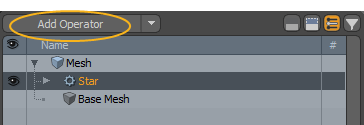 1.   장면에 소스 메쉬를 추가하십시오. 타겟 메시로 변형됩니다. 이 예에서는 XY비행기. 에서 Mesh Ops 탭을 클릭하십시오 Add Operator 더블 클릭 Mesh Operations > Create > Curves > Star.