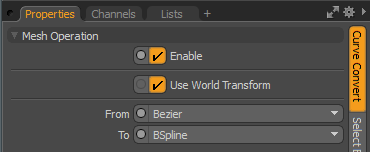 | 3. | 를 엽니 다 MeshOps 오른쪽 패널에서 탭을 클릭하고 Add Operator > Curves > Curve Convert. |