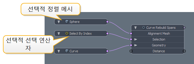 | 3. | Alignment Mesh 또는 Selection 연산자를 사용하는 경우 각각 Alignment Mesh 및 Selection 입력에 연결하십시오. |
