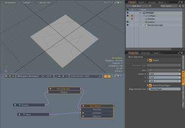 | 4. | 원래 메쉬 레이어, 지오메트리가 포함 된 레이어 및 Mesh Ops 탭을 클릭하십시오 Add Operator을 선택한 다음 Mesh Operations > Edit > Curve Effector. |