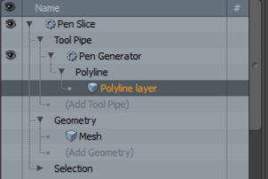 | 4. | 원래 메쉬 레이어, 지오메트리가 포함 된 레이어 및 Mesh Ops 탭을 클릭하십시오 Add Operator을 선택한 다음 Mesh Operations > Edit > Pen Slice. |