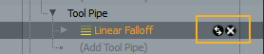 수정자는 선택한 메쉬 작업의 도구 파이프에 나타납니다. 필드 오른쪽에 마우스를 놓으면 두 개의 추가 컨트롤이 나타납니다.