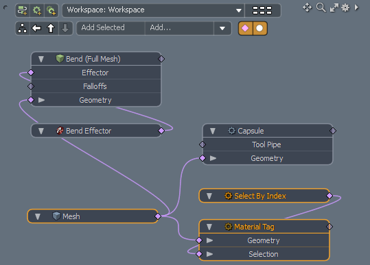 Modo 있다 기능 노드가 시각적으로 연결되어 항목과 작업 간의 관계를 정의하고 재정의하는 방법을 제공하는 2D 환경 인 뷰포트. 원하는 결과를 얻기 위해 결합 할 수있는 항목의 시각적 네트워크를 구축 할 수 있습니다.