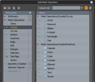 같이 Modo 일반 다이렉트 모델링에 대한 대안을 제공하는 모델링에 대한 다양한 접근 방식이 개발되었습니다. 절차 및 회로도 모델링 방법은 비파괴적이고 재구성 가능한 모델링 시스템을 제공하도록 설계되었습니다. MeshFusion 모델링 방식은 새로운 지오메트리를 생성하기위한 고급의 정교한 부울 연산 세트를 제공하도록 설계되었습니다.