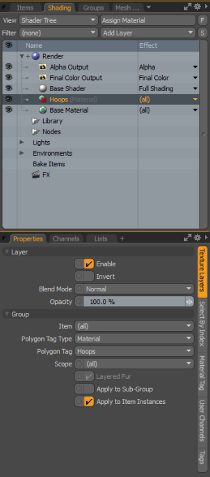 | 8. | 음영 속성에서 그룹을 재료 태그와 일치 시키려면 탭에서 로 설정 , 설정 에 . |