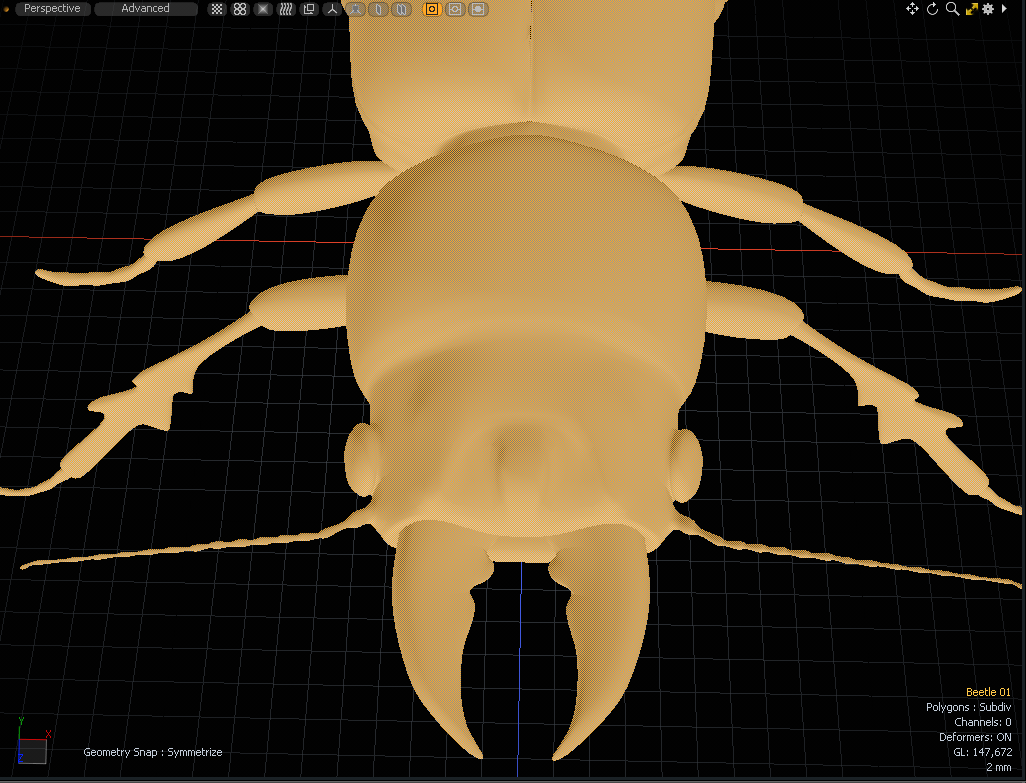 딱정벌레에 Symmetrize가 적용되고 두 하악골의 크기가 동일합니다.