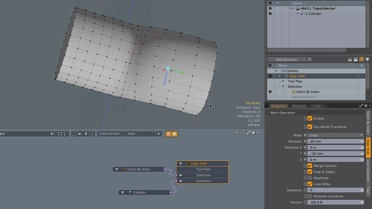 • 에서 Mesh Ops 탭을 클릭하십시오 Add Operator을 두 번 클릭 Mesh Operations > Edge > Edge Slide.
