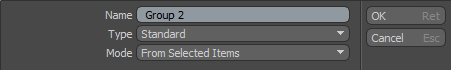 누르면 New Group 뷰포트 상단 근처에있는 버튼은 New Group 대화 상자에서 초기 그룹을 정의 할 수 있습니다. 다양한 그룹을 생성 할 수 있지만 대부분 다른 위치에있는 특정 UI 컨트롤을 사용하려고합니다. Modo 전문 그룹을 생성합니다.