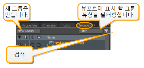 에 표시 할 그룹 유형을 필터링 할 수 있습니다. Groups 뷰포트.